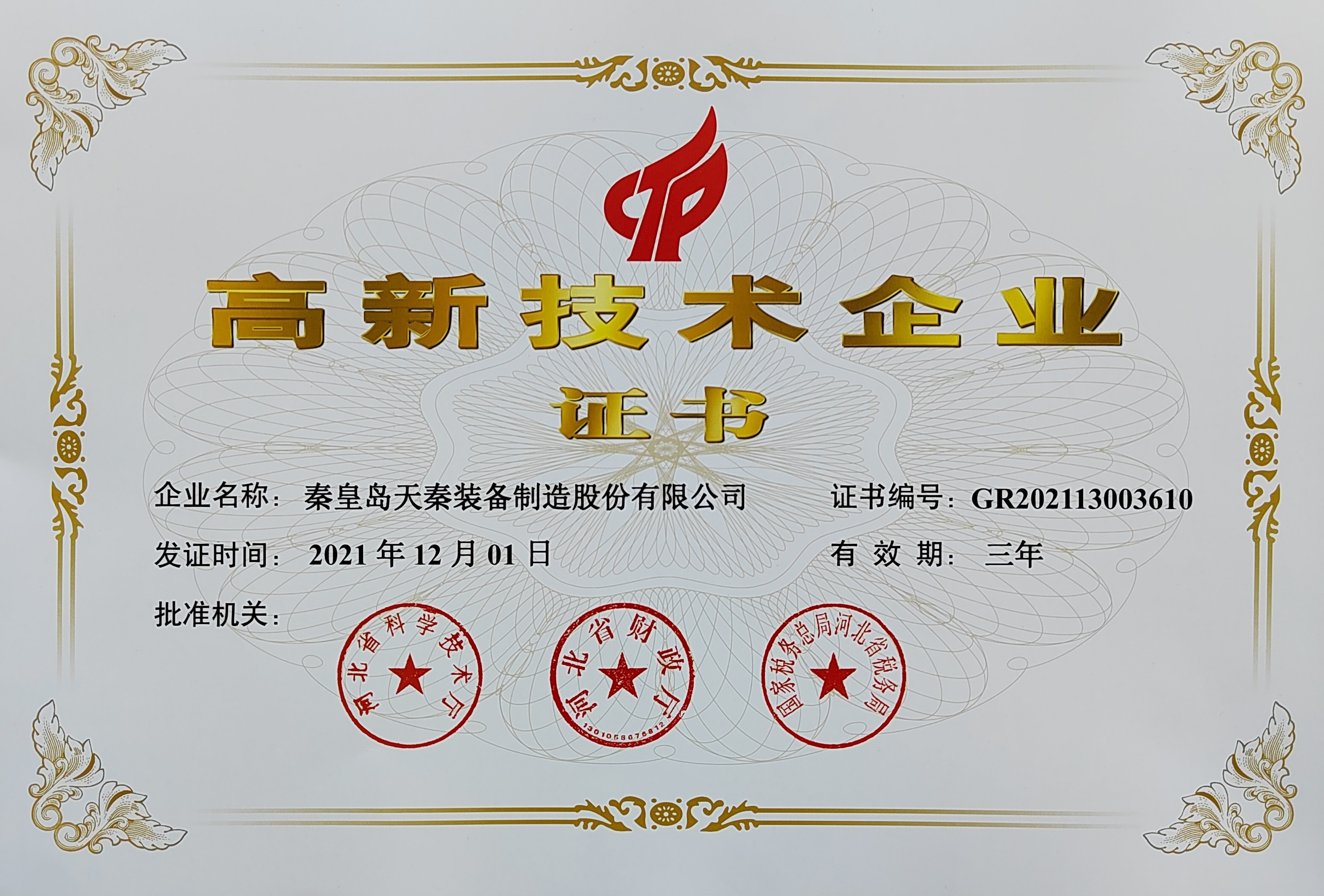 • 秦皇島天秦裝備制造股份有限公司創(chuàng)立于1996年,總部位于河北省秦皇島市經(jīng)濟(jì)技術(shù)開發(fā)區(qū),秦皇島廠區(qū)占地4萬平方米,擁有3萬平方米的標(biāo)準(zhǔn)廠房、辦公樓和工程技術(shù)研發(fā)中心;分部天津廠區(qū)位于天津市靜海經(jīng)濟(jì)開發(fā)區(qū),占地2萬平方米,擁有1.6萬平方米標(biāo)準(zhǔn)廠房。 公司通過了GB/T 19001質(zhì)量管理體系及GB/T 24001環(huán)境管理體系認(rèn)證,是國家高新技術(shù)企業(yè)、河北省軍民融合產(chǎn)學(xué)研用創(chuàng)建基地,建有省級院士工作站。